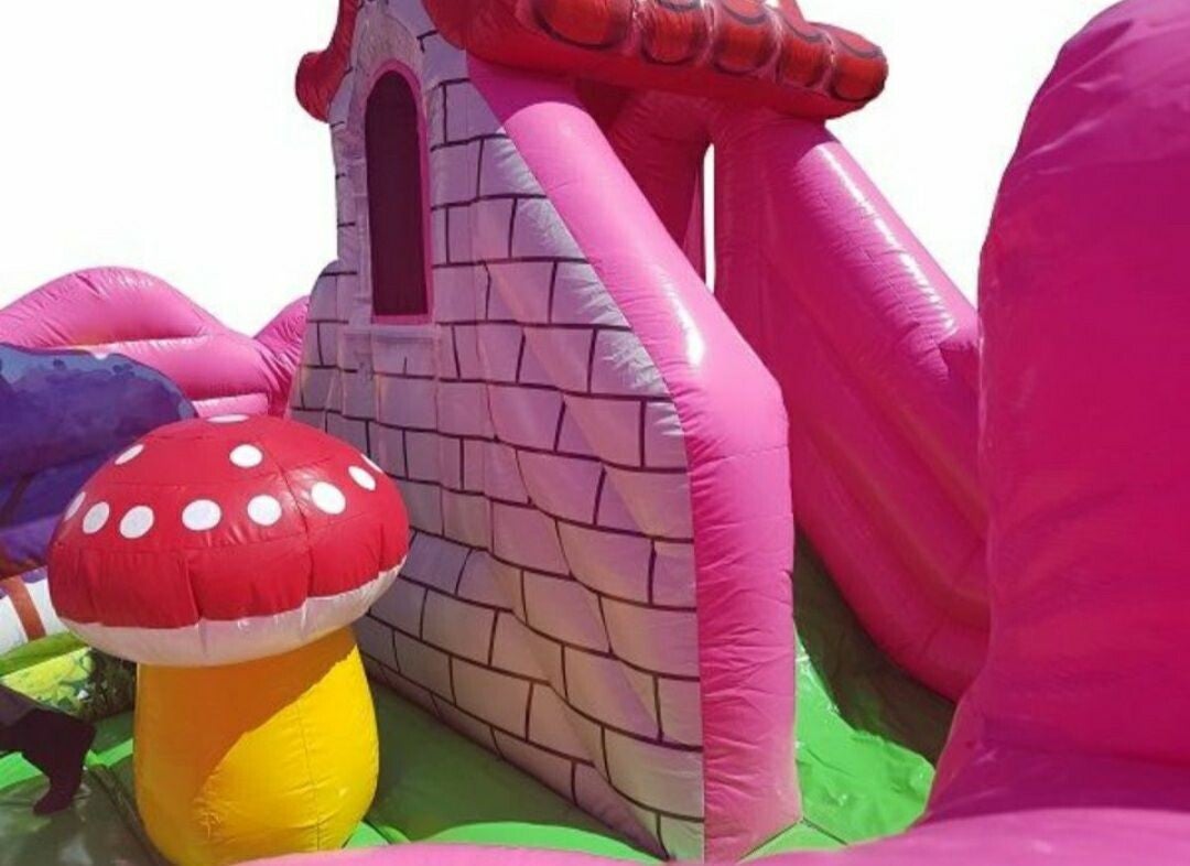 Miete unsere zauberhafte Hüpfburg – Einhorn mit Schloss & Rutsche!