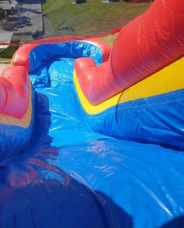 Unsere coole Wasserrutsche mit integriertem Pool im Piraten-Look bringt actiongeladenen Wasserspaß direkt zu euch nach Hause oder auf euer Event! Ideal für Kinder, die auf Abenteuer, Wasser und wilde Rutschpartien stehen!